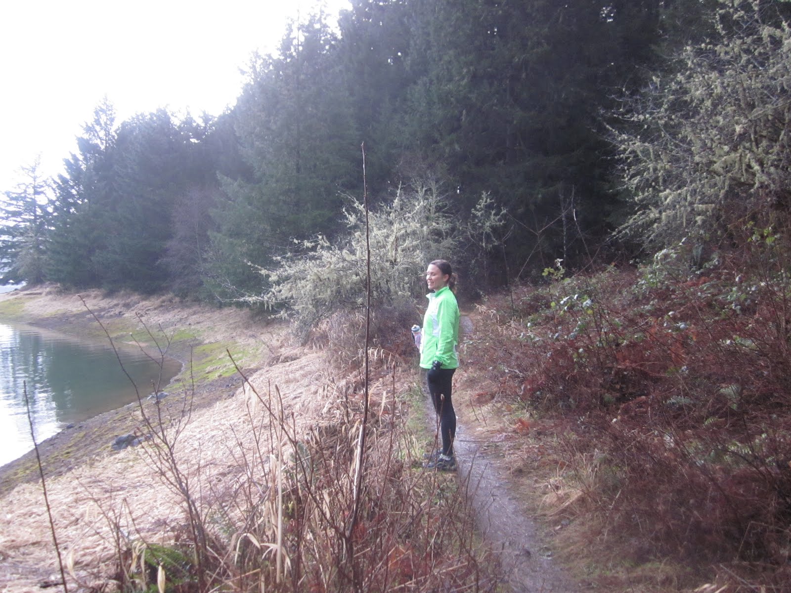 In order to give ourselves a little leeway, we opted for an early race start. There were about 30 other people that also signed up to get out ahead of the 300 or so other racers. We figured we would need all the time we could get. The course was one 3 mile out and back and then two laps around Hagg Lake. Each lap was 14 miles, so after the out and back and the first loop that would make 17 miles...more than enough for me to call it a day after. Our plan was to go slowly, walk when we needed and eat at all 3 aid stations, each time around (which was going to be once for me).